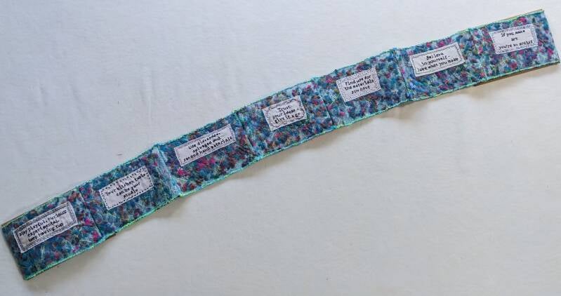 The statements in this book were written in response to researching a range of artists' manifestos. I wanted to think about what is important to me in my practice and through using the constraint of sevens for my (forty nine years is) Seven Times Seven project I devised a list of seven, seven word statements. These focus both on self-belief and ways of working and sum up how I want to work and feel about my own art practice.