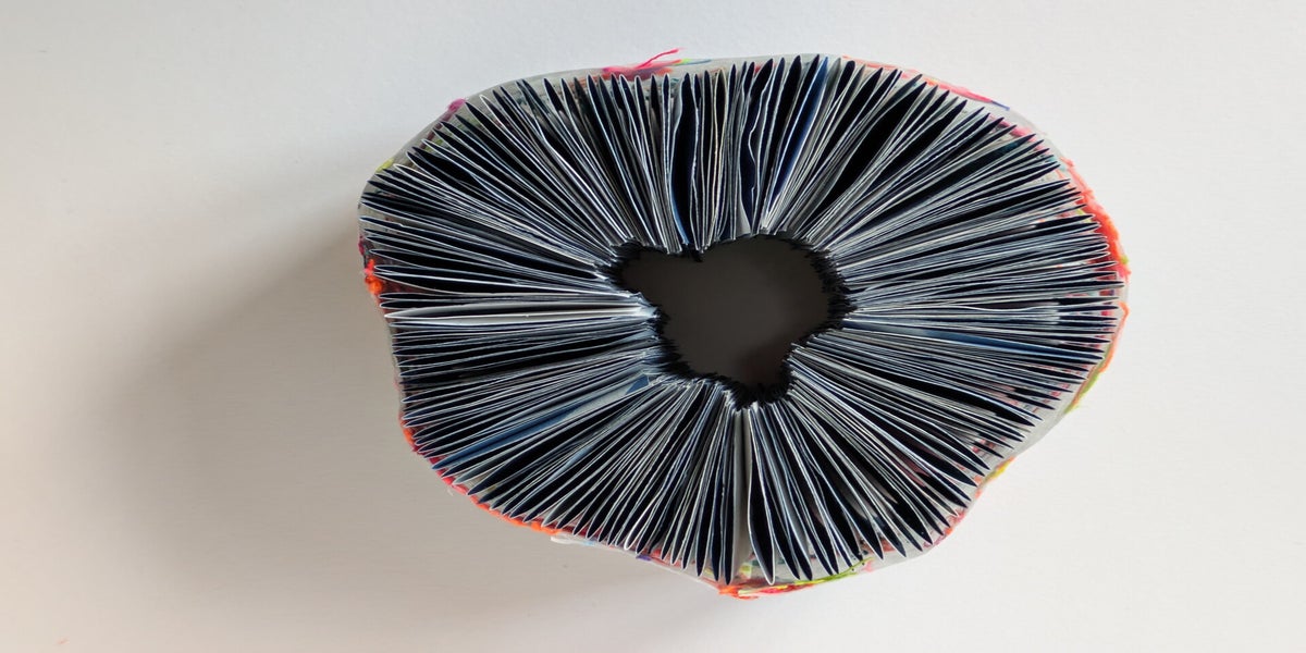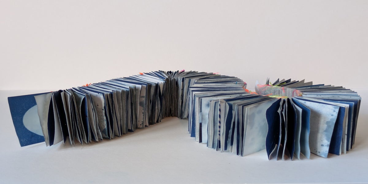This challenge was started back in 2017. The challenge creators, Di, Sarah and Lisa, set a prompt for each month, inviting artists to make a book based response. This highlights the diversity of the artist book, there are so many possibilities and sometimes the question 'is it book enough?' Responses are posted through their instagram account to share with the wider community. I contributed my first book in May 2023 and have found it to be a wonderful, creative space. A really good use of social media. I have found a new group of online friends from around the world. Plus a new real life friend when we realised we lived in the same county and so have met up in person.