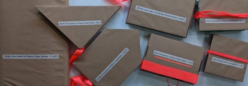 Seven separate, yet related works each taking the form of an artist's book. The work can be considered as multiple standalones or as one cohesive whole. Within each piece the number seven is repeatedly used as a constraint