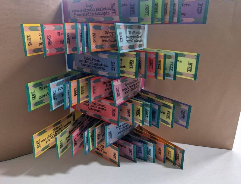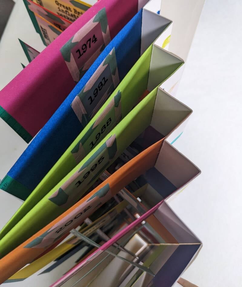 Forty nine years of news stories going from 1974, the year I was born, up to 2022. Each story told in seven words. Brought together in the form of a large flag artist's book.